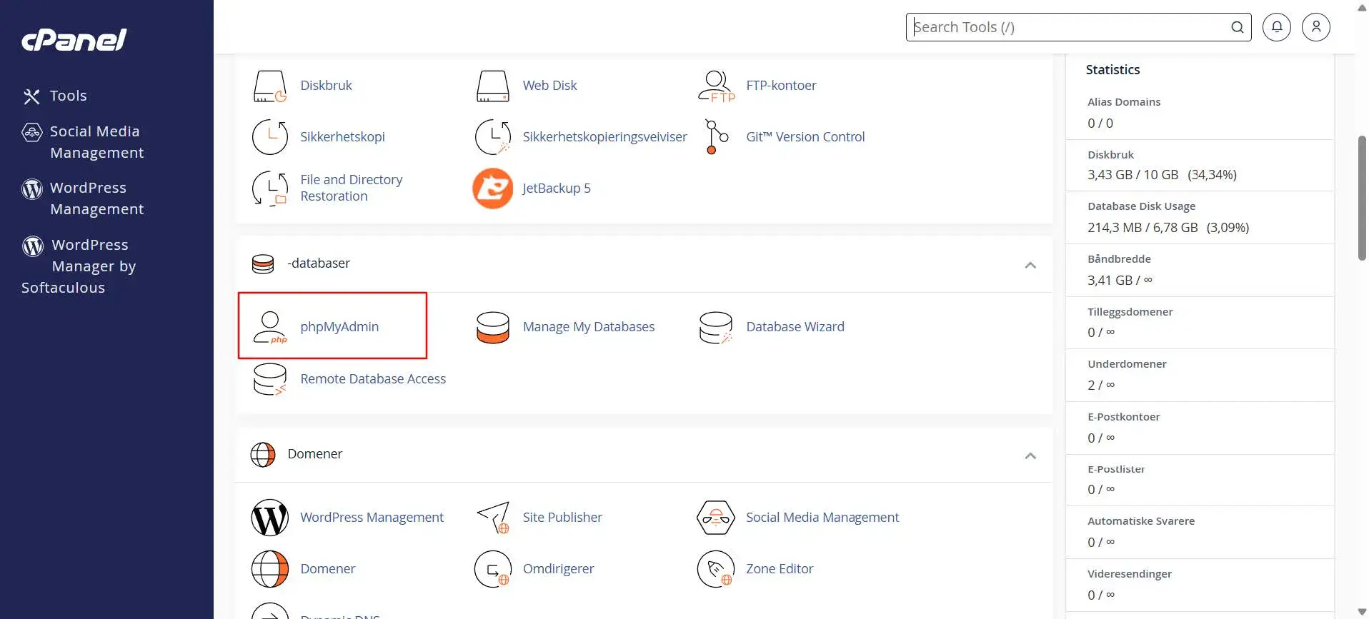 Da må du feil søke i Cpanel. Dersom du ikke har tilgang på Cpanel, så må du be de som hoster nettsiden din om hjelp.